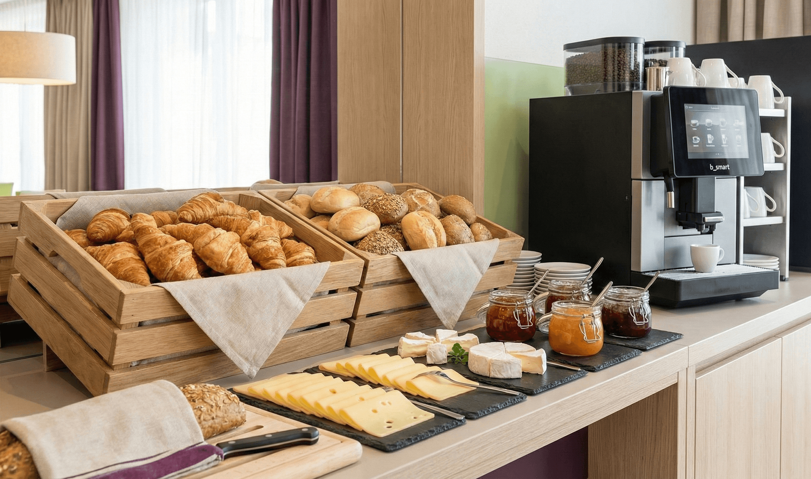 Unser Frühstückskonzept funktioniert ohne Personal – es braucht nur Vor- und Nachbearbeitung. Ihre Gäste bedienen sich selbst. Mutige Gastgeber können auf Coffee-to-go umstellen und den Prozess nochmals erheblich vereinfachen.
